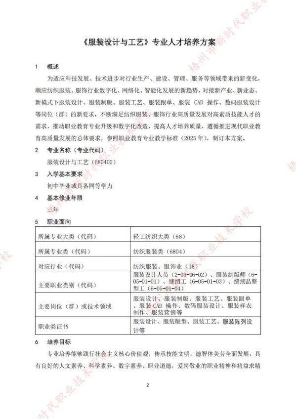 《服装设计与工艺》专业人才培养方案(25.8修订)